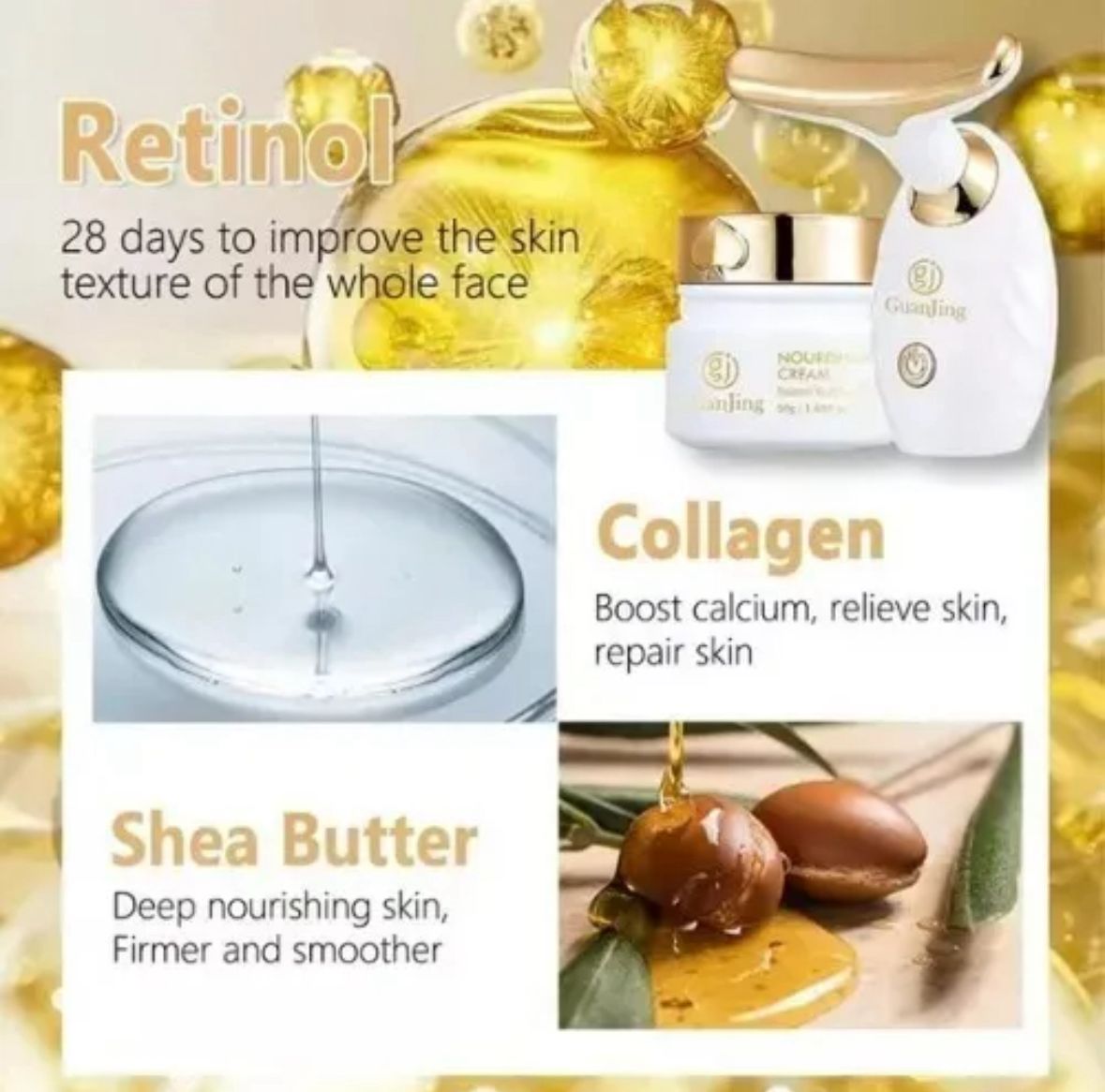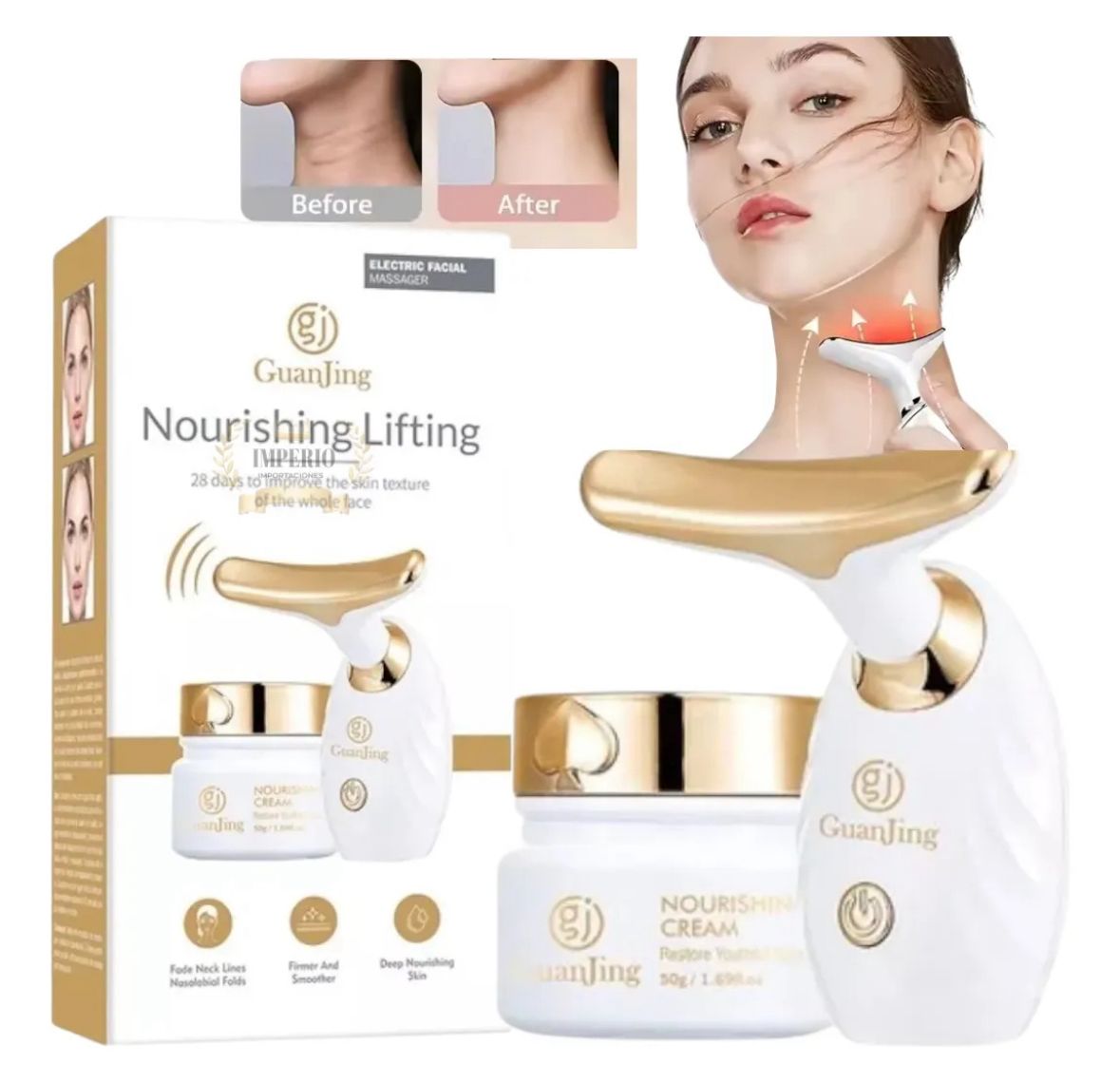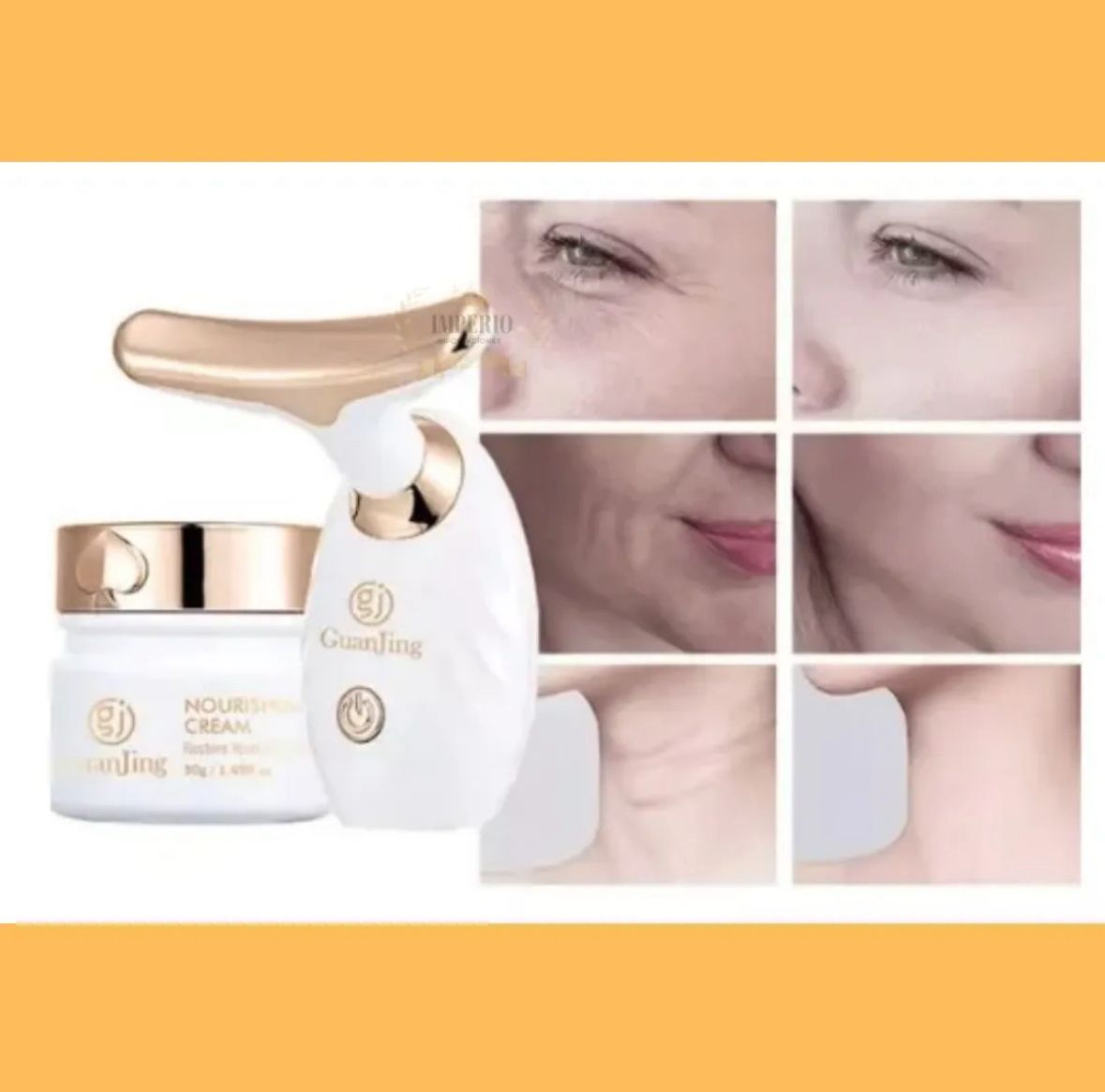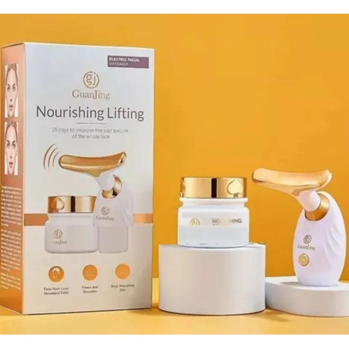 Presentamos el set de Crema Nutritiva Lifting y Masajeador Facial Eléctrico GuanJing, perfecto para rejuvenecer y nutrir la piel. Con 50 gramos de crema nutritiva, este set también incluye un masajeador facial eléctrico para obtener resultados óptimos. Consigue una piel sana y radiante con esta potente combinación.